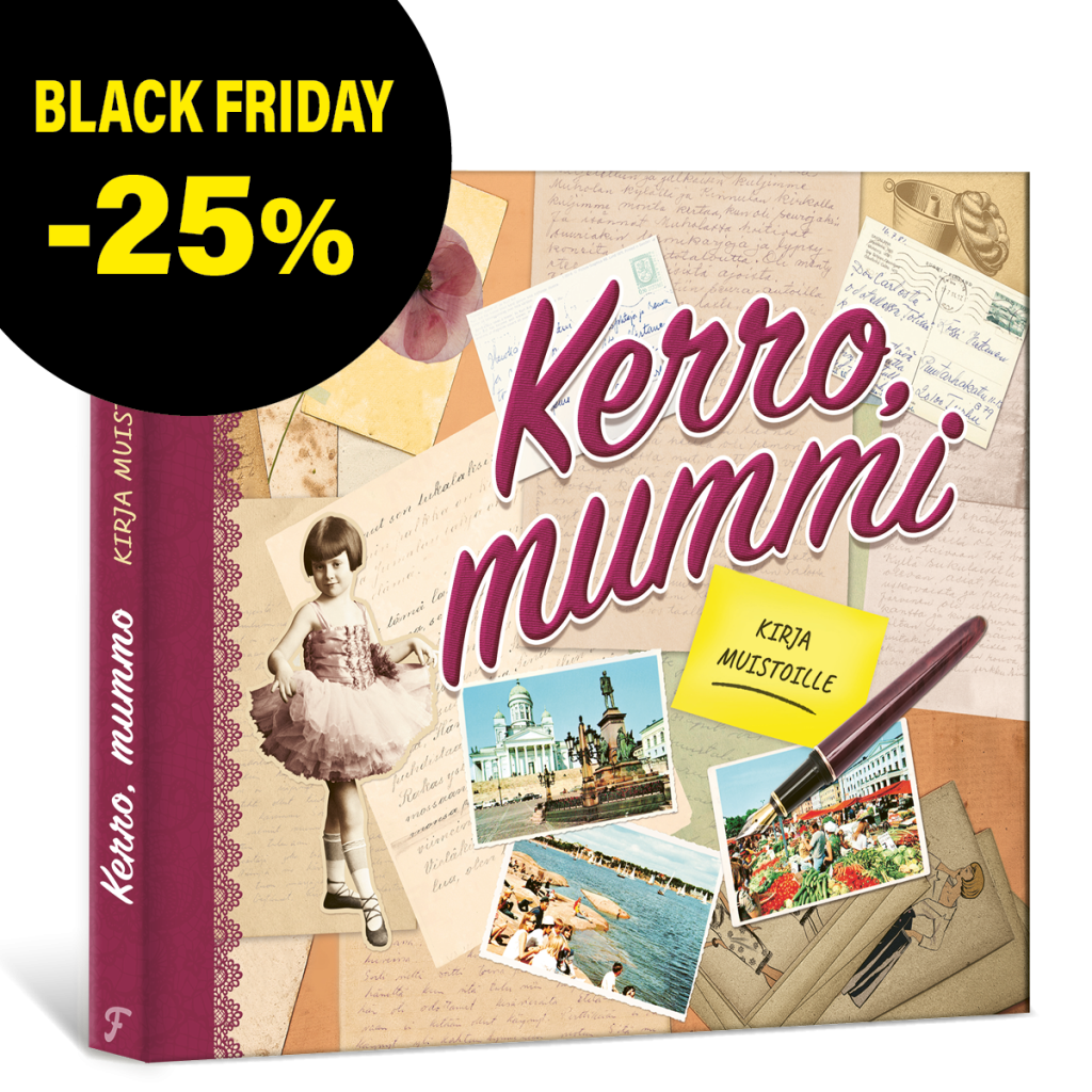Kirja Kerro, mummi on uniikki lahja, joka tuo hymyn mummin huulille. Se on avoin kirja mummon muistojen tallettamiseen lapsuudesta aina tähän päivään saakka. Mummi voi kirjoittaa kirjaan itse tai perheenjäsenten avustuksella ja vastata lukuisiin tarkoin valikoituihin kysymyksiin. Kirjasta syntyy kronikka, josta tulee koko perheelle mittaamattoman arvokas.